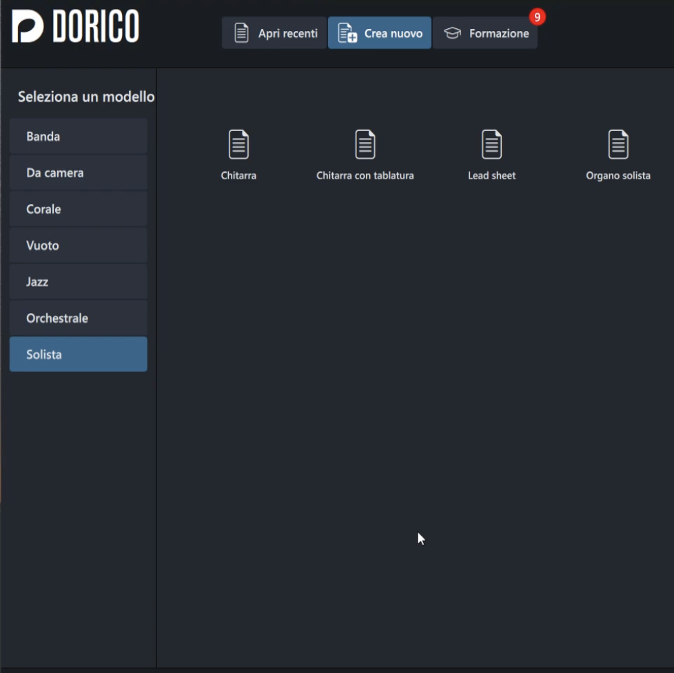 Il funzionamento della schermata che appare all’apertura del programma: L’hub di Dorico