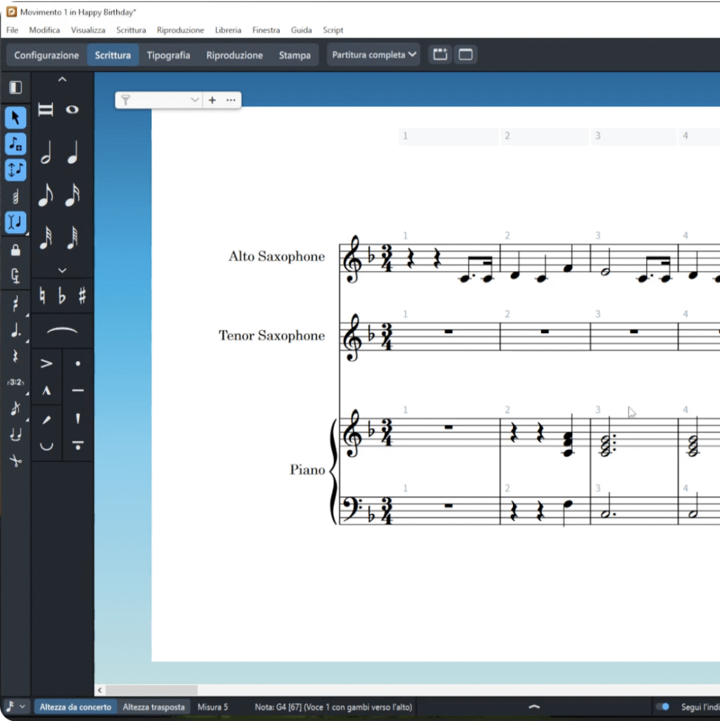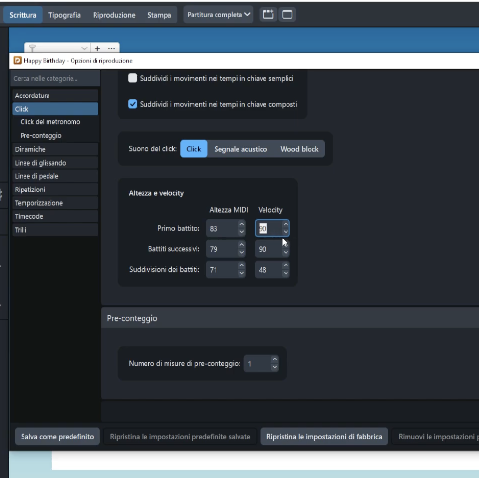 Configurazione di una partitura di esempio (9a sinfonia di Beethoven)