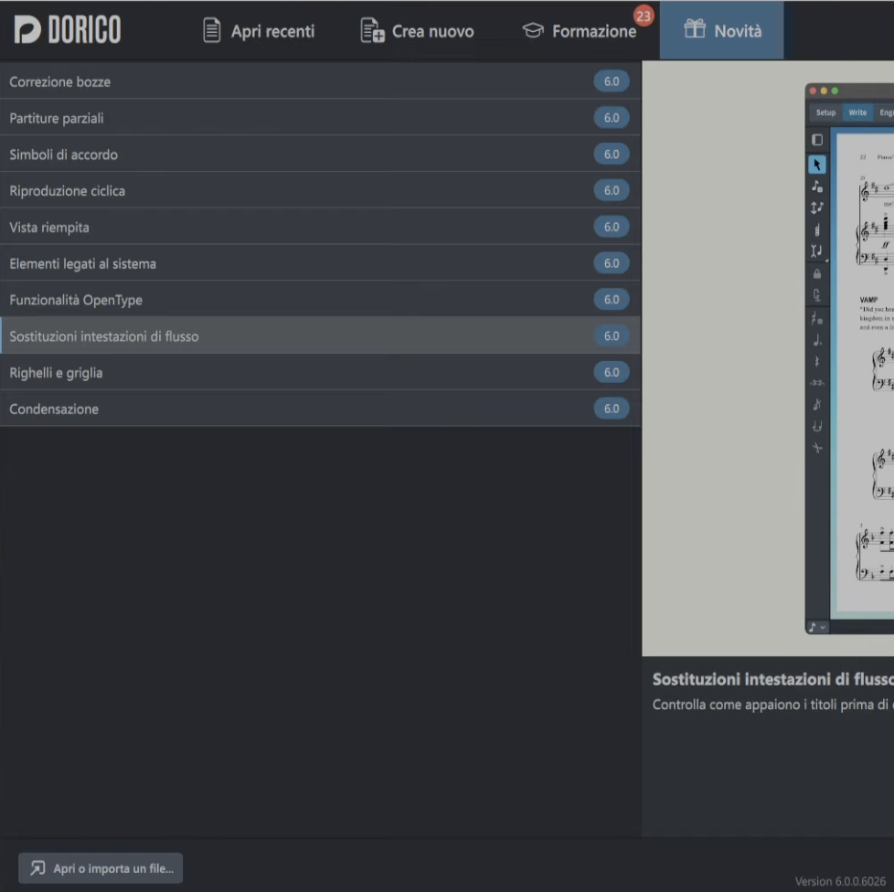 Novità sull’interfaccia dopo l’aggiornamento a Dorico Pro 6