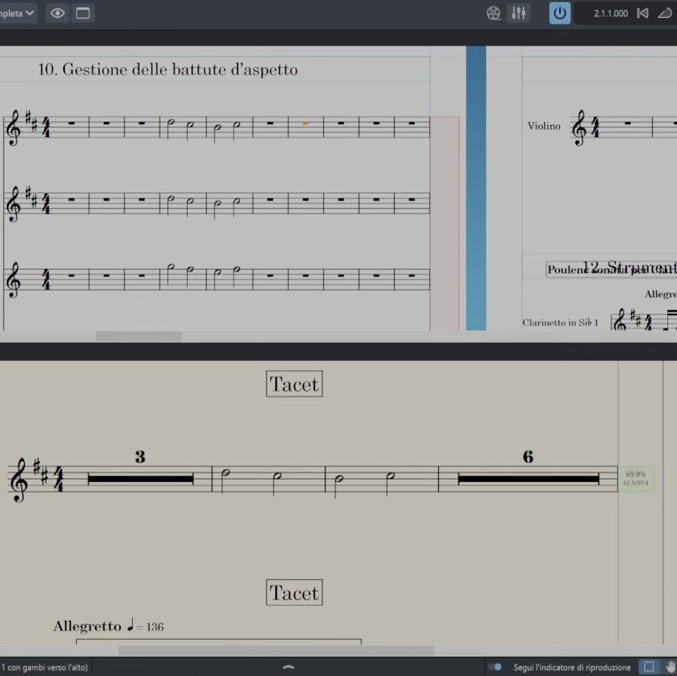 Una grande novità introdotta con l’aggiornamento a Dorico Pro 6, utile per scrivere partiture in stile contemporaneo: i ritagli dei righi